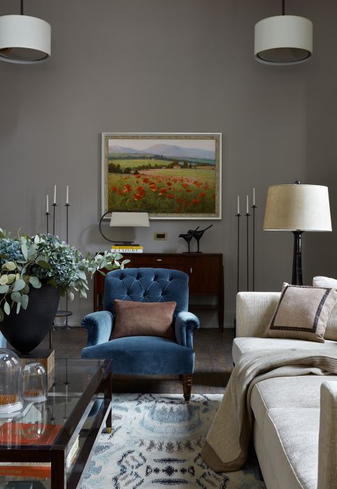 The client — a lady with a good nose for business — approached our studio with a request to create the interiors for her home, which is located on a private plot in Virginia Waters. She quickly decided what she wanted, and put her implicit trust in the hands of professionals. She wanted a home that was snug, comfortable, and designed with our house reputation for restrained elegance that typifies the work of the SELBEUM design studio.